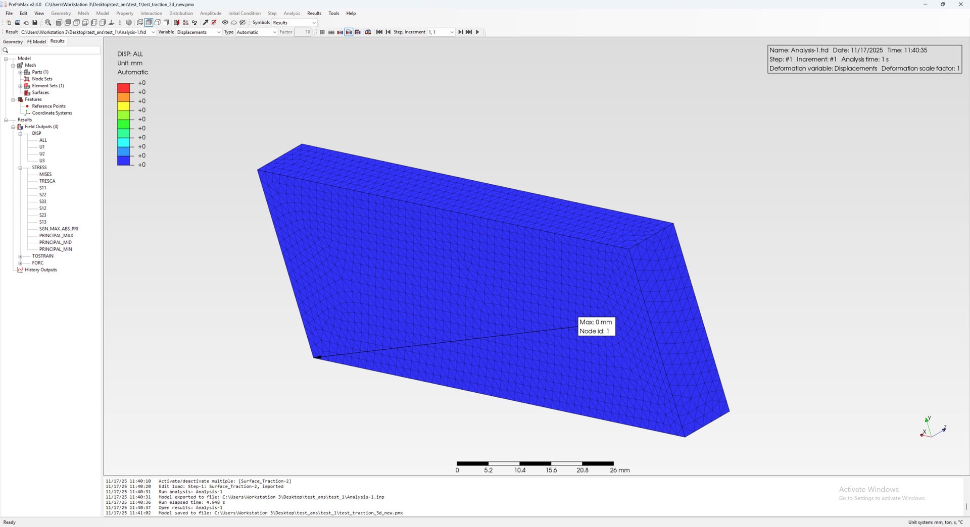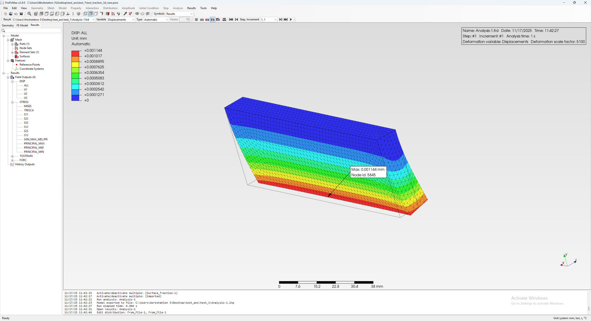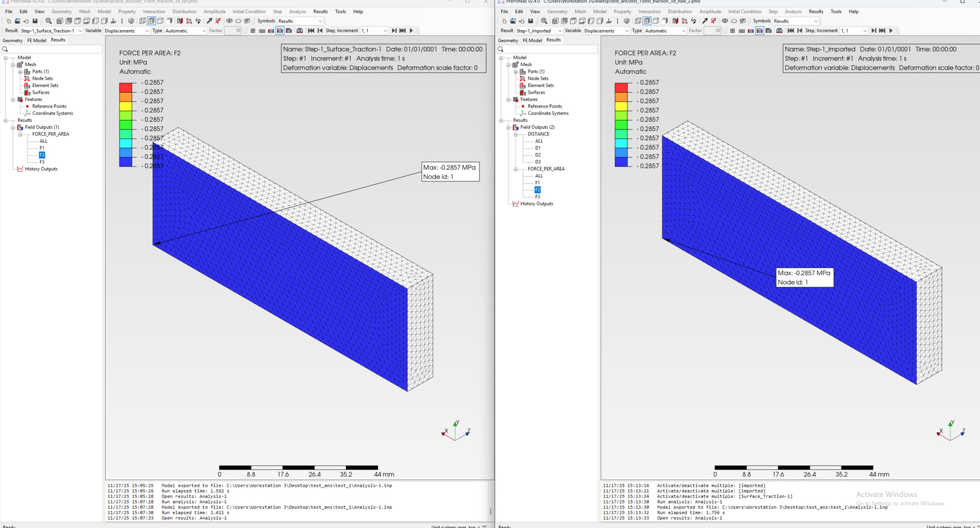 I am trying to compare the results of an imported distributed load on a surface with the PropoMax load, but I keep getting null results. The two loads should be equivalent. On my original mesh, I computed the force for each element using the following expression: Fytot / Atot * area_el_j / Area_tot.