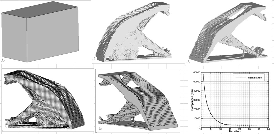 My research focuses on topology optimization and additive manufacturing. Currently, I use Python as my main framework, but it is limited to structured homogeneous grids, or better said, all hex meshes of the same size. I am planning to implement topology optimization (SIMP method — Solid Isotropic Material with Penalization) within CalculiX. Several ideas have come to mind.